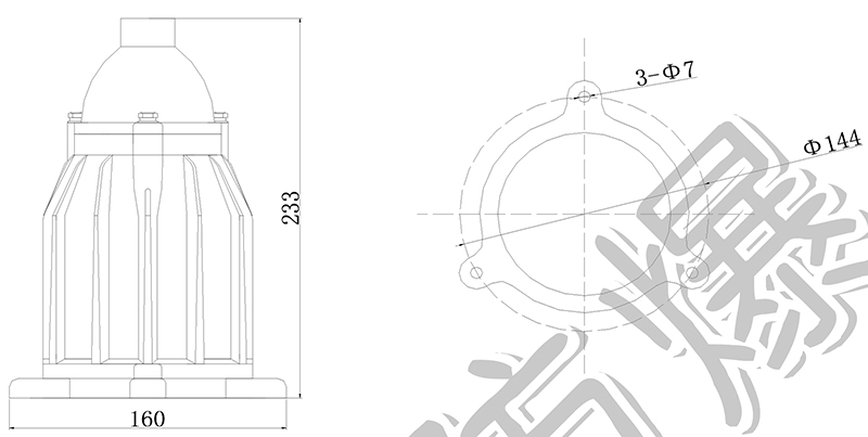 > 例如:需要 AC220V 普通型ⅡB 級白熾燈 60W,則產(chǎn)品選型為 CBS58-60/220P ExdⅡBT4;